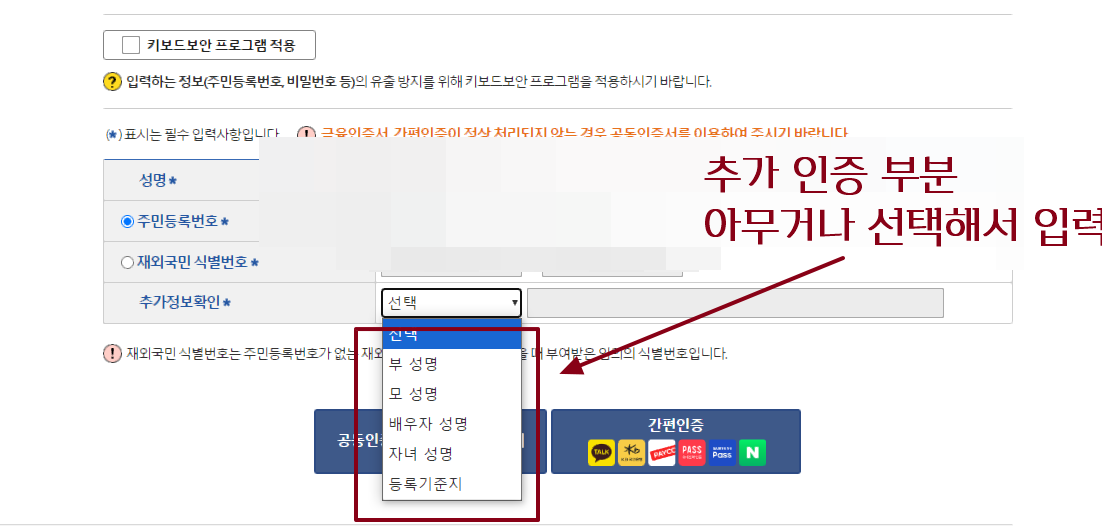 - 공인인증서, 카카오 인증, 패스 인증 등 간편 인증 수단 중 하나를 준비합니다.