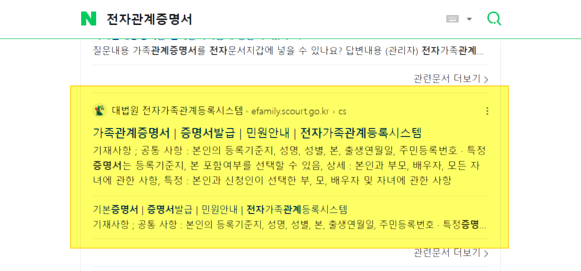 가족관계증명서 핸드폰발급 - 1. 전자가족관계등록시스템