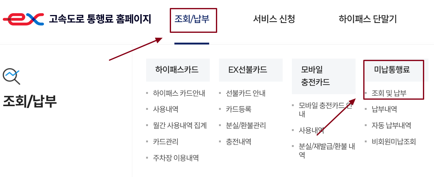 고속도로 통행료 미납조회 방법