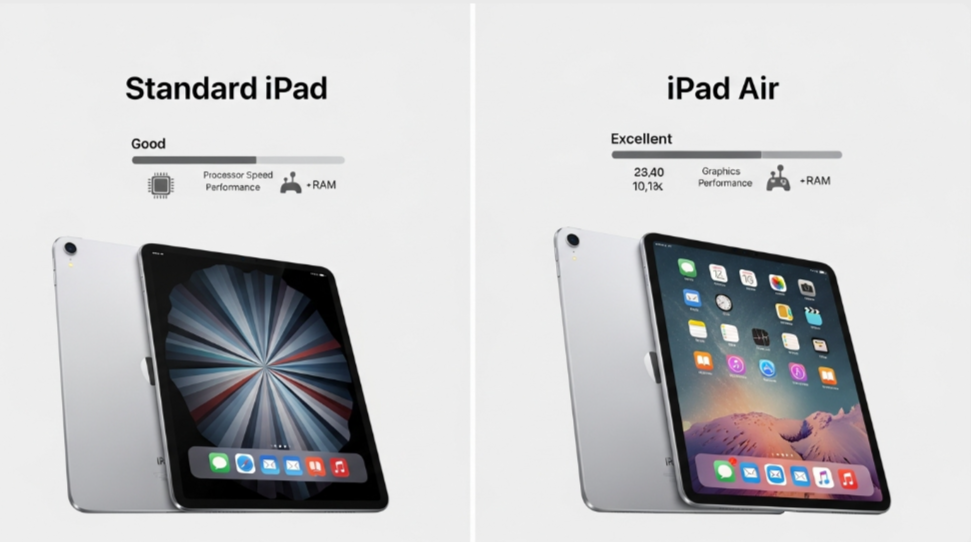 요약하면, 장기 업그레이드 주기를 길게 가져가거나 창·앱 전환이 빈번한 크리에이티브·업무 환경에서는 에어가 유리하고, 학습·콘텐츠 소비·가벼운 생산성 위주이면 기본형으로도 만족도가 높습니다.